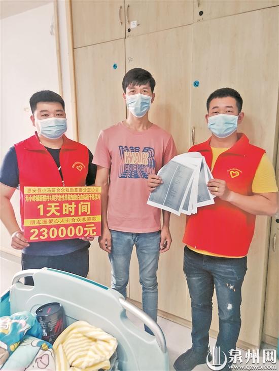 得知情况后,惠安县小马哥合众救助慈善公益协会的志愿者和爱心人士1002人(包含机构)行动起来,24小时为小军筹捐23万元。昨日,志愿者一行前往福州,在福建省协和医院,将这笔沉甸甸的爱心款交到孩子父母手中。