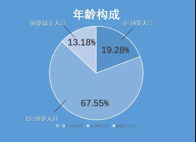 全区常住人口中,0-14岁人口为76352人,占19.28%;15-59岁人口为267571人,占67.55%;60岁及以上人口为52189人,占13.18%,其中65岁及以上人口为35218人,占8.89%。与2010年第六次全国人口普查相比,0-14岁人口的比重提高7.04个百分点,15-59岁人口的比重下降10.82个百分点,60岁及以上人口的比重提高3.79个百分点,65岁及以上人口的比重提高2.40个百分点。