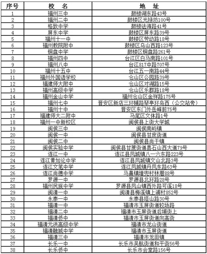 2021年福州市普通高考考点出炉