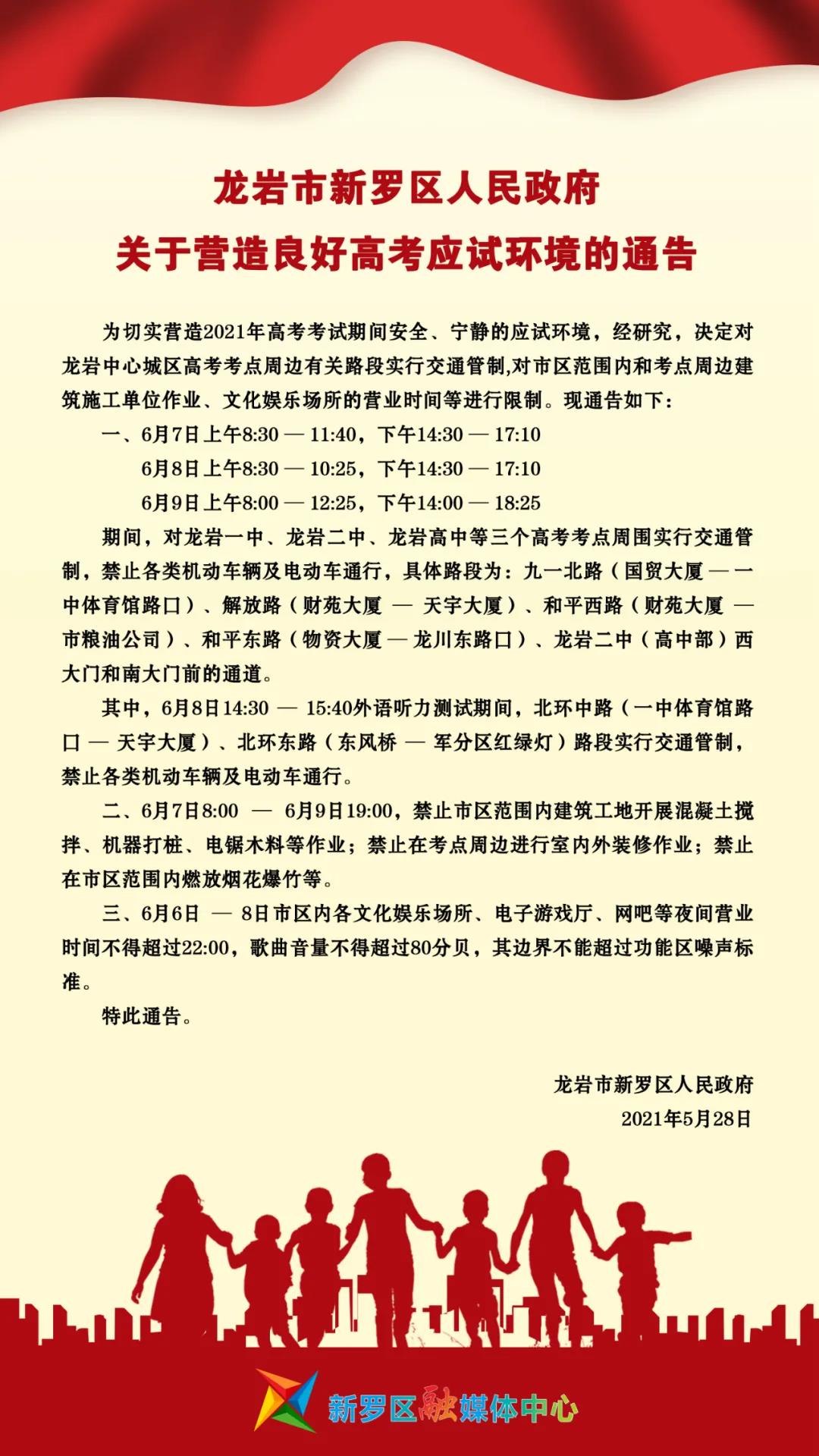 请广大市民和考生家长提前规划出行路线!