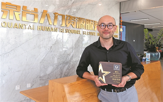 邀约如期而至。6月4日上午,泉台人力资源服务产业园“设计之声”沙龙分享会,庄以仁做了他在故乡的第二场演讲。47岁的他,儒雅、风趣、谦虚,时不时中英互译。他从洪亚清手里接过创业导师的聘书,也接过了故乡沉甸甸的信任。