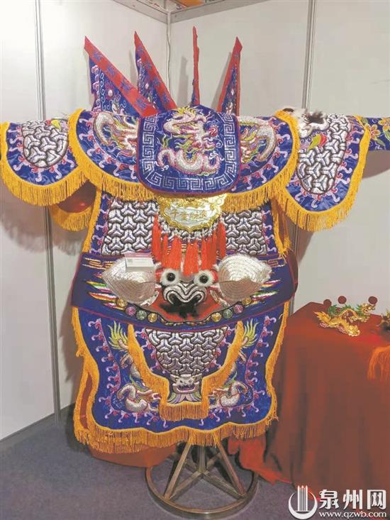 泉州古称“泉南佛国”,泉州人民间信仰兴盛,而由此衍生的佛妆服饰发展也从未间断,至今已有一千多年历史了。佛妆服饰主要是指神佛雕塑的服饰和冠带,融合了纸帽头盔、刺绣服饰等技艺。其中衣服部分,以闽南地区著名的金苍绣法为主。佛妆服饰技艺以民间家族式、师承式传承为主。