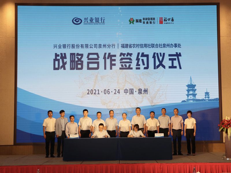 6月24日,兴业银行泉州分行与福建省农信联社泉州办事处签署战略合作协议。根据协议,双方将在资金业务、财富管理、支付结算、资产负债、国际业务、研究咨询等方面开展全面合作,实现产品、服务、科技、网点、客户等多方面的资源共享和优势互补。