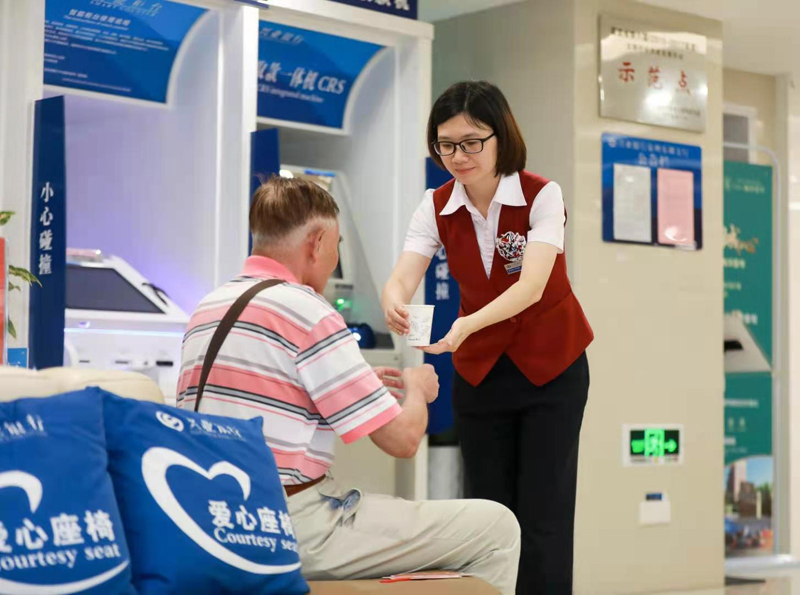 在兴业银行泉州安溪支行,轮椅、应急药箱、血压计、老花镜等助老设备一应俱全,大堂经理一日三巡首先要检查的就是各项便老设施是否需要更换或补充。为了便利老年客户,该网点成立了雷锋志愿服务站,指定厅堂团队为志愿服务者主要成员,在每日巡检值班过程中及时了解老年客户需求,提供相应的志愿者服务。