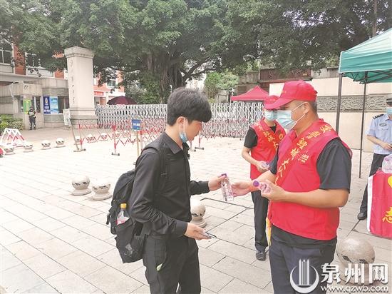 志愿者为考生送上饮用水