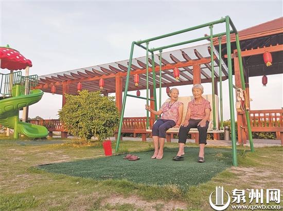 吃过饭,老人相邀一起到小公园散步、荡秋千,喜欢唱歌的到凉亭边卡拉OK一展歌喉。黄莲英老人先到健身路径健身,再到小公园散步。86岁的赖慧敏和王投治老人住同一房间,两人相约搭乘电梯上楼,“上下楼有电梯,房间有电视、卫生间,床头有报警器,走廊有扶手,每个月定期有医生来帮我们检查身体……”赖慧敏说,养老院就在村旁,孩子们孝顺,天天来看她,她也将敬老院当成自己的另外一个家。