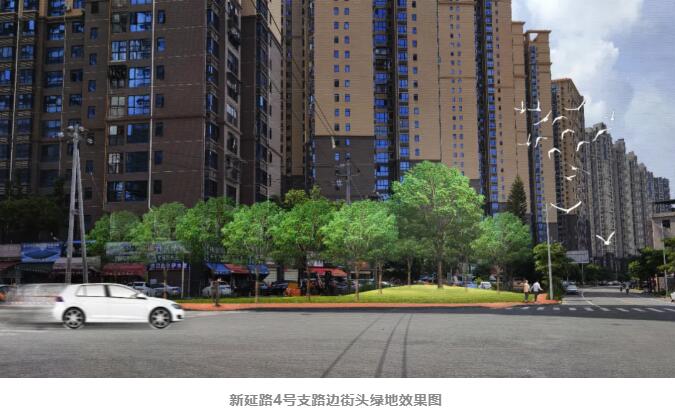 浮桥街道新延路4号支路边街头绿地将利用现有地形适当堆坡,形成疏林和草坡,打造具有层次感的绿地景观。