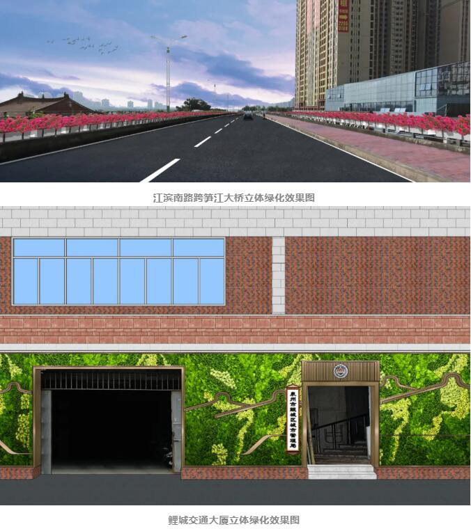 江滨南路跨笋江大桥高架左侧绿化长势较差,右侧绿化缺失,此次立体绿化将对其进行整体改造,更换左侧绿化花箱,右侧新增花箱,统一种植三角梅;鲤城交通大厦周边绿化较少,种植池缺失,此次将采用立体植物墙的形式增绿补绿。