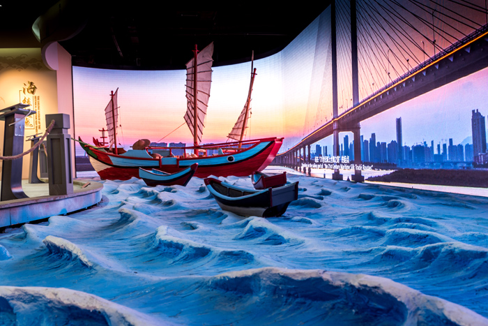 晋江市展馆“大美晋江剧场”用沙盘、多媒体技术演示《晋江之路》。(晋江市展馆/供图)