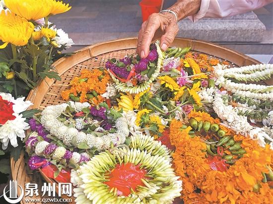 洁白高雅的茉莉花;有“六月雪”美称的素馨花;鹅黄色的含笑花;球状紫红色的粗糠花……曾阿婆三轮车上,摆的都是泉州人常买的花。闽南民俗多,许多场合用花有讲究,所以,找曾阿婆买花,还附赠民俗知识。泉州人结婚、七夕及年节到各个寺庙拜拜,用的花不一样,数量不同,很多人不懂,买的时候就请教她,她都会很耐心地告诉大家。