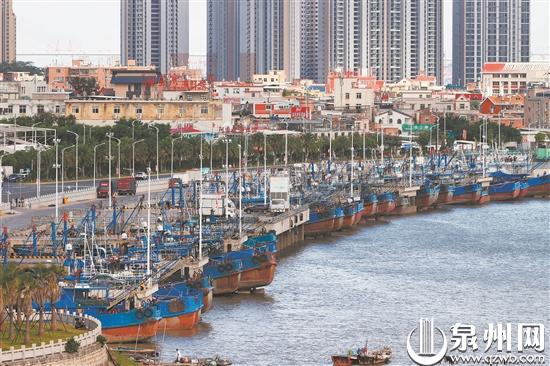 今年第6号台风“烟花”将于24日夜间到25日上午在闽浙沿海登陆。市防指昨日15时启动防台风IV级应急响应。泉州各地各部门迅速进入临战状态,切实落实各项防御措施。图为昨日,市区丰海路渔人码头,渔民加固靠岸渔船。(陈晓东 摄)