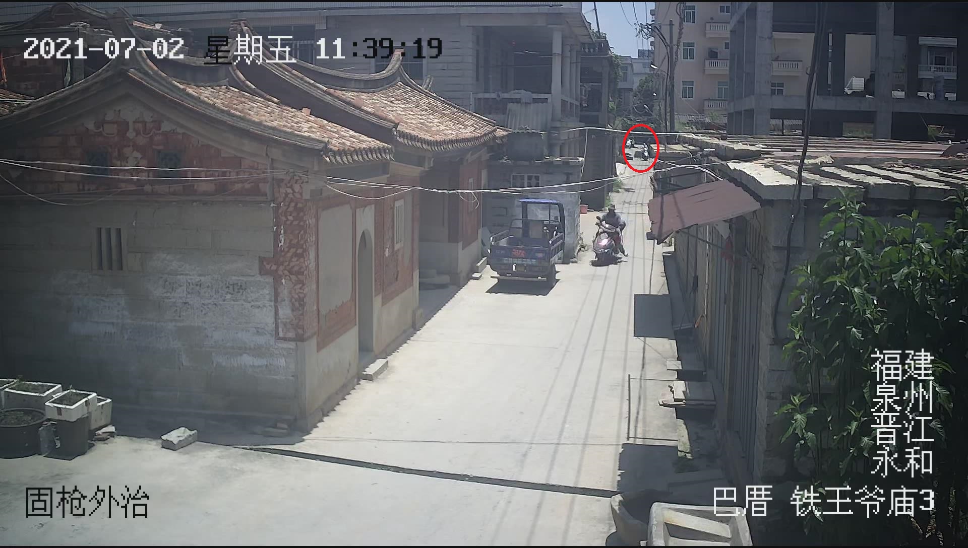 通过现场勘查,民警发现牛肉店外面的门锁没有被撬痕迹,初步判断盗窃很可能是预先躲藏在内,作案后拉开门栓从后门溜走。通过调取海量的视频监控,民警发现一名到店里吃饭消费的男子十分可疑。该男子上午11时许骑着一辆女式摩托车来到牛肉店消费,奇怪的是该男子大热天不仅戴口罩,还穿长袖,自他进店后,就没再出现在店门口。