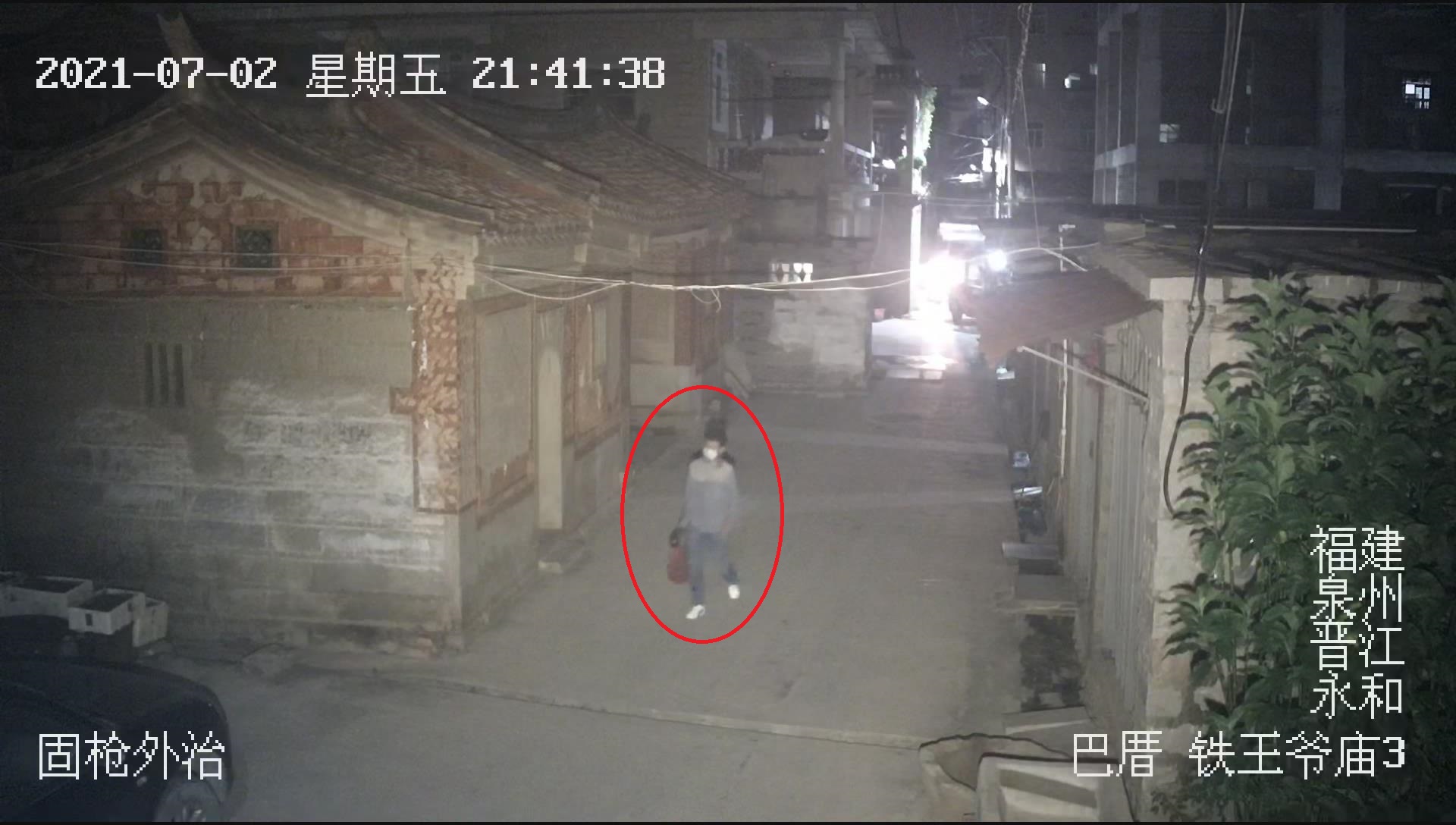 当晚9时许,苏某再次出现在监控探头里,手上提着一袋东西。