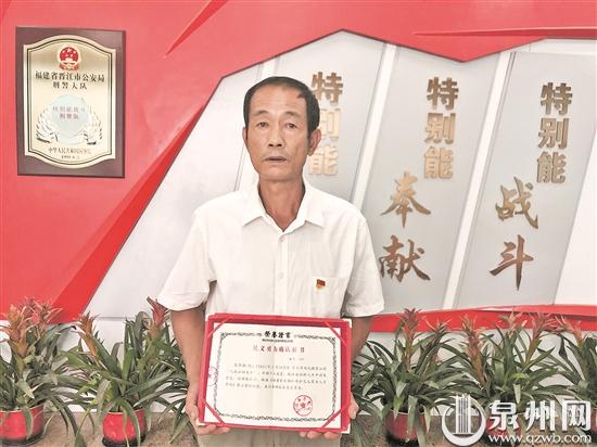 泉州网7月24日讯 (记者 吴水保 通讯员 张金坛 颜伊兰 文/图)今年5月10日,晋江市内坑镇黎山村张坑自然村一水塘内,一名60多岁妇女不慎落水。危急关头,村里的老党员张华添正好经过发现,立即划“船”将该妇女救起。7月23日上午,晋江市公安局召开新闻发布会,为勇士张华添颁发了见义勇为确认证书。