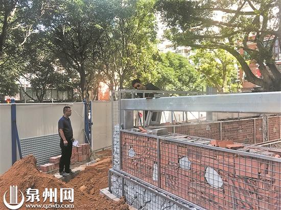 在市区东涂街丰泽新村南门外的社区大楼及后坂街上,沿街搭起脚手架,工人正在紧张施工中。丰泽后坂片区改造项目负责人许志国表示,目前正在进行的是老旧片区的外立面整治提升工程,通过整治、翻新跟清洗等各种形式,统一空调机位、规整店招,达到美化和简洁的改造效果。