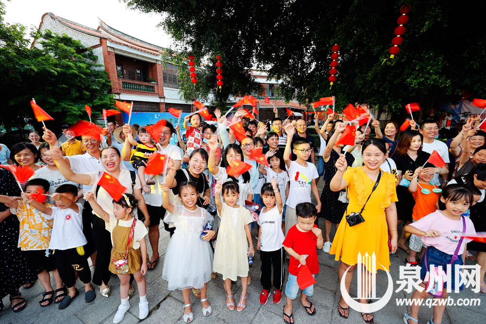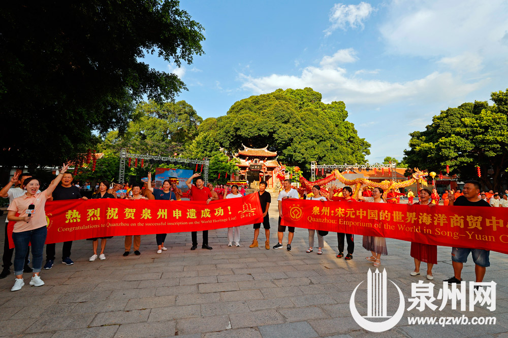 25日傍晚6时许,泉州市区真武庙广场,市民群众庆祝泉州申遗成功。(陈晓东 摄)