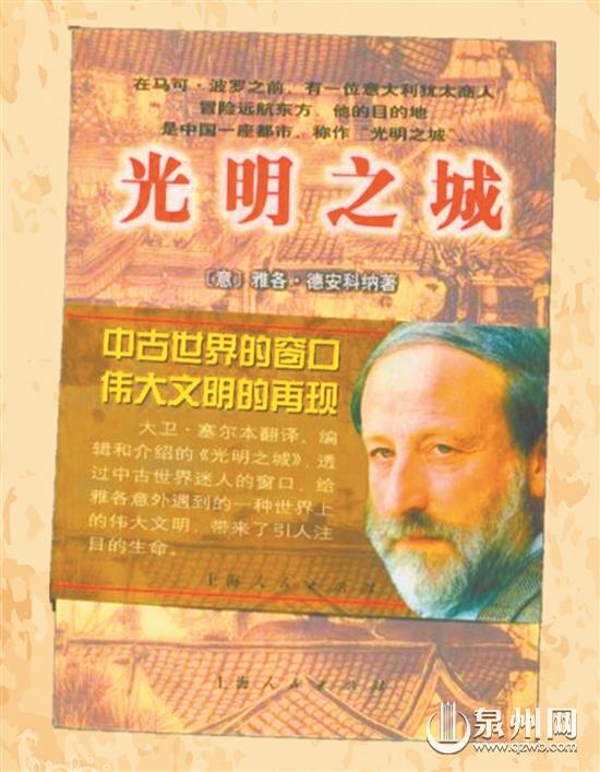 相比马可·波罗、鄂多立克、伊本·白图泰等人,13世纪意大利犹太商人雅各·德安科纳显得籍籍无名。但一本根据他的手稿修撰的《光明之城》,却在近年引发世界学术界的广泛关注。雅各的手稿是英国学者大卫·塞尔本教授在一个偶然的机会看到的,他觉得此书很有价值便将其译成英文,取名《光明之城》。《光明之城》记载雅各·德安科纳经海路来华,1271年8月至1272年2月间居住于刺桐城(泉州)的见闻。