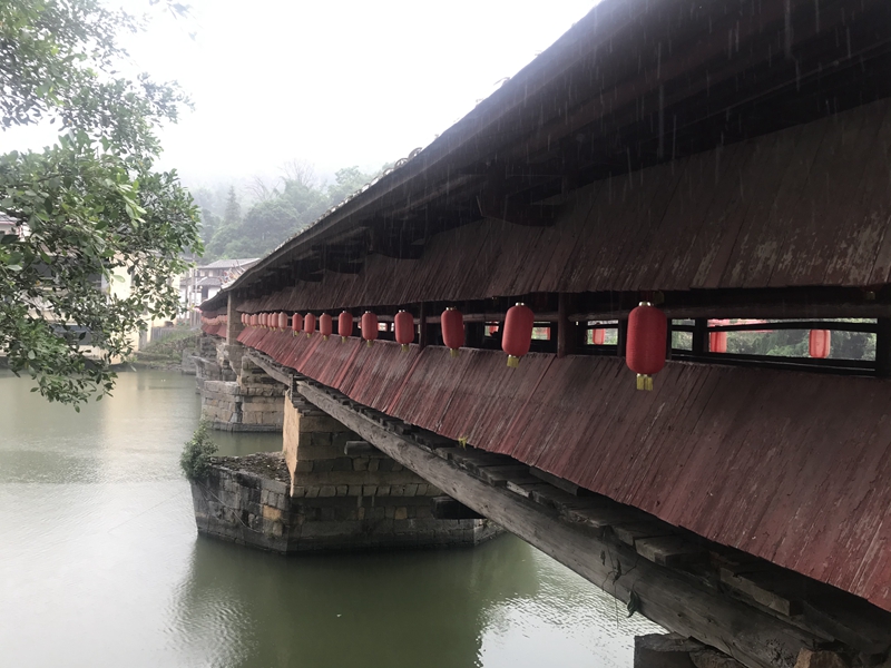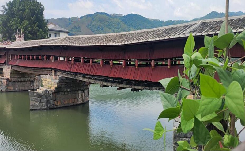 5.东关桥:东关桥飞架在湖洋溪上,始建于南宋绍兴十五年(公元1145年),是迄今已有870多年历史的省重点文物保护单位。东关桥是闽南罕见的长廊屋盖梁式桥,其睡木沉基、船形桥墩、墩上叠涩等建造技艺还较完整地保留着宋代桥梁建筑的特点,技艺之精湛、构造之奇特实属罕见。民间盛传此处观音十分灵验,建桥后年年香火不断,故又名通仙桥。