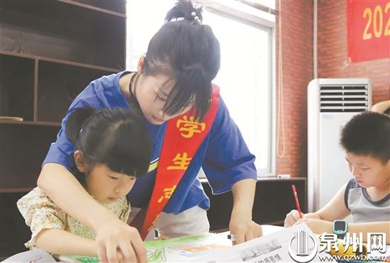 昨日,记者在洛江万安街道青少年社会教育活动中心看到,几位大学生志愿者正手把手地教孩子们绘画。在志愿者的指导下,一幅幅充满奇思妙想的“大作”新鲜出炉,孩子的脸上绽放出喜悦的笑容。