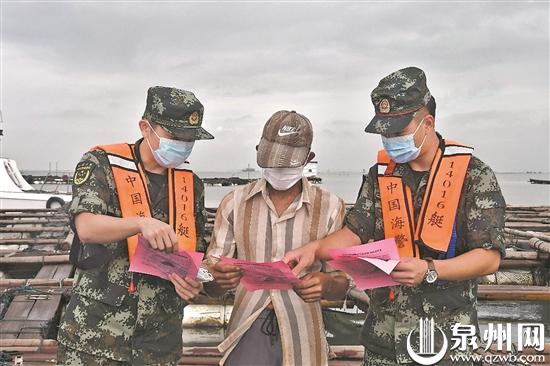 海警进渔港、上鱼排宣传防范台风 (王丽虹 廖淑梅 摄)