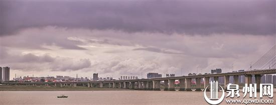 昨日下午,在中心市区江滨路上望去,远处的天空乌云滚滚。(林劲峰 摄)