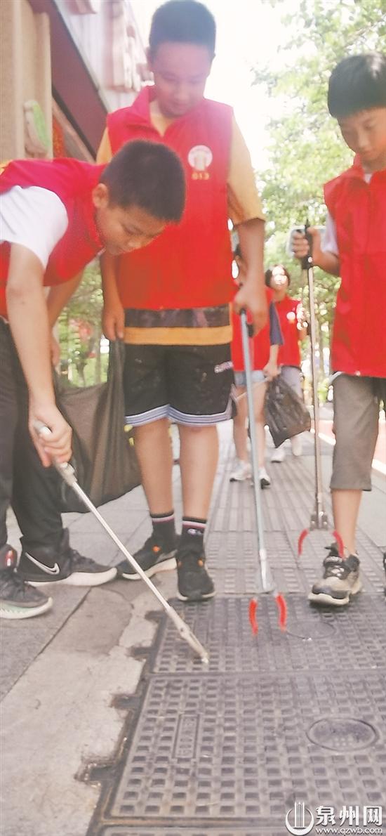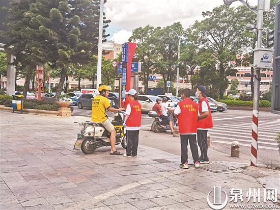 在泉秀街口,烈日下几名志愿者将乱停乱放的自行车、电动车整齐摆放在停车位中;泉州商城附近,来自泉州一中的学生志愿者王兵宇和同学们一起参与烟头不落地活动,清理路面夹缝中的烟头;泉州实验小学的杨淑龙老师、泉州市温陵实验幼儿园的老师们趁着暑假积极参加由泉州市东南公益协会组织开展的“爱心冰柜免费送水”活动,带着学生走上大街,向坚守岗位的环卫工、执勤交警等送水;心理老师林荔韩、郭婷婷等到泉州商城驿站开展心理咨询服务,为市民答疑解难……一抹抹亮丽的“志愿红”,奋斗在创城的第一线。