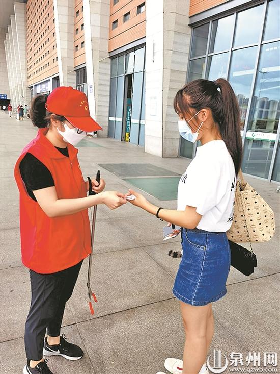 “这位志愿者姐姐,在哪里办理临时身份证,你知道吗?”同日,在泉州火车站,一名年轻女子及其母亲找到正在出站口执勤的志愿者。志愿者小胡随即带她们来到出发层询问公安岗亭执勤人员,了解到办理临时身份证的窗口在一楼售票厅10号窗口处。为了避免母女俩来回搬运行李,小胡主动带女子下楼办理,让其母亲留原地等待。