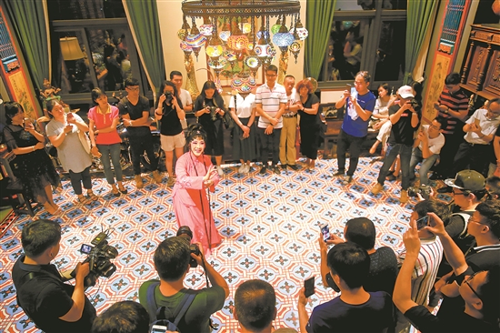 梨园戏沉浸式演出吸引不少市民(潘登 摄)