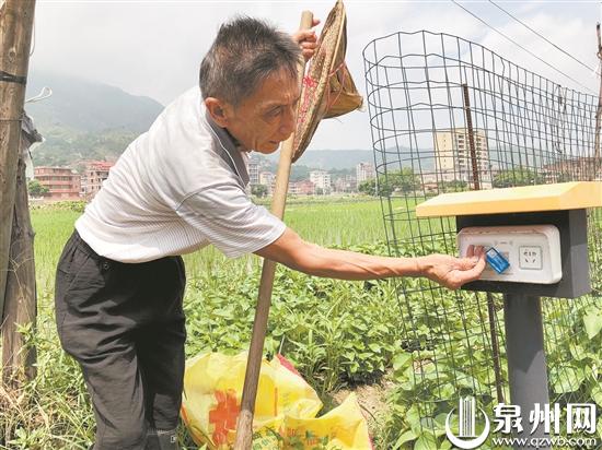“你看,只需将水泵电机的插头插入插座,再刷一下卡,就能直接通电灌溉。不用时把插头拔掉,自动断电,很简单!”洪东山种植有2亩水稻,他回忆道,过去靠天吃饭,少雨时期,稻田旁的水渠常常是干的,缺水灌溉会影响水稻生长。去年村里修了蓄水池,建设泵站引水,他就找田边的住户“借电”,拉出电线抽水。“一方面是麻烦,老是向别人借电,久而久之欠人家人情,一方面也不安全。”