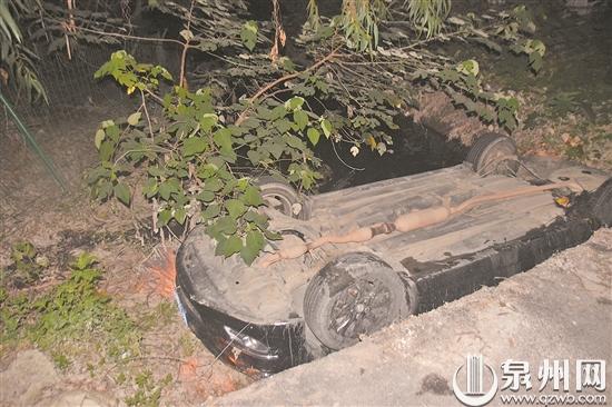 泉州网8月20日讯 (记者吴水保 通讯员白荣辉 钟培源 文/图)8月17日晚11时许,在晋江市池店镇曾村涵洞路段,一辆小车与对向车辆交会时倒车避让,不慎翻车掉进内沟河里,所幸无人员伤亡。
