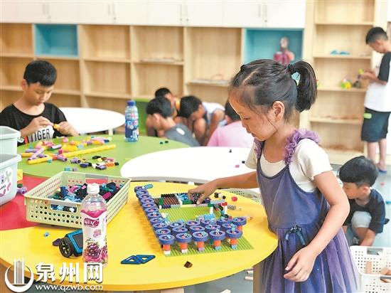 小朋友在二楼创意空间搭积木 (陈灵 摄)