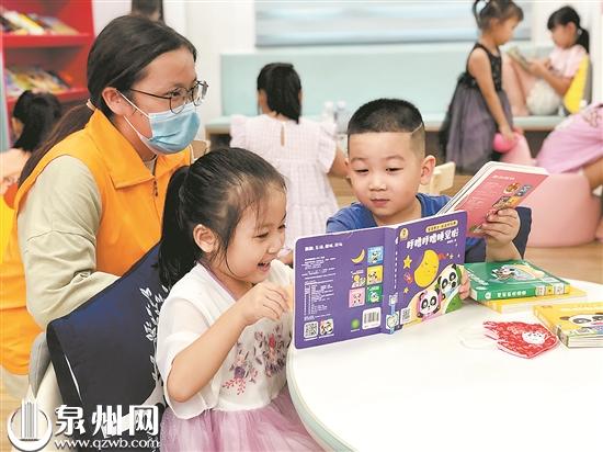 志愿者陪伴小朋友阅读 (陈灵 摄)