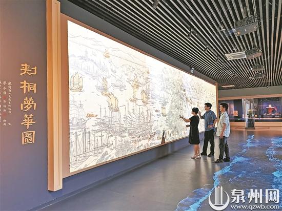 当你走进泉州海外交通史博物馆,抬头望去,一幅《刺桐梦华图》作品放大版被悬挂在馆内,千年前刺桐港、刺桐城无尽的繁华尽收眼底。据馆方介绍,此幅画作展出后,来馆里参观的本土和外来人士络绎不绝,好评如潮。
