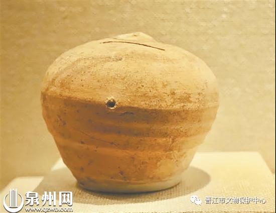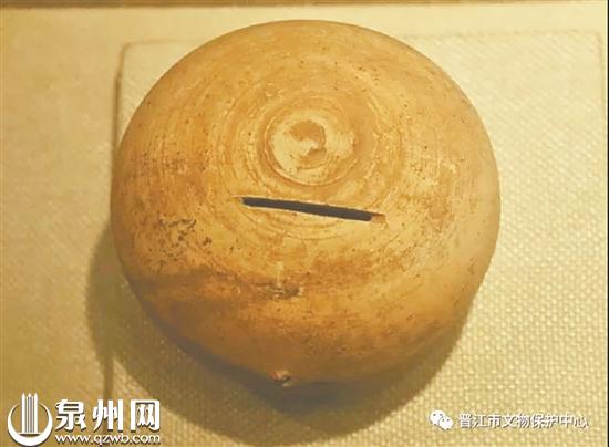 “扑满就是古代专门用来贮钱的容器,它的妙处是钱币可以放进去却不容易拿不来,只有等到存满钱后打破,方能取出钱,即‘满则扑之’,故名‘扑满’。”晋江市文物保护中心主任吴金鹏介绍,因特殊的使用方式,完整的传世“扑满”极少,现在国内各博物馆展出的扑满主要来源于古墓葬的随葬品和窑场遗址出土。
