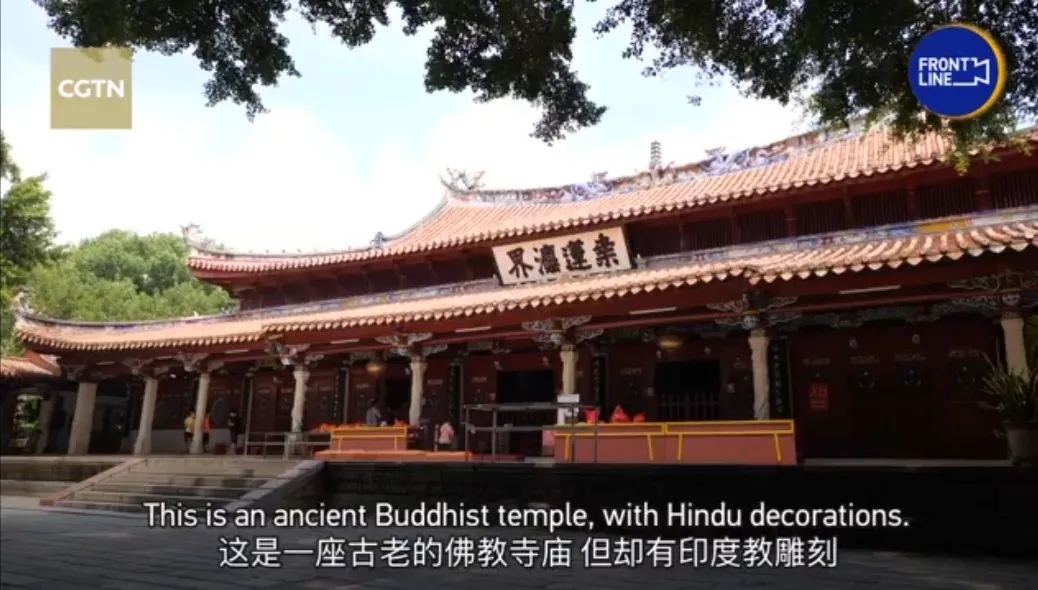 “今年,‘泉州:宋元中国的世界海洋商贸中心’获准列入《世界遗产名录》。跟着记者走进这座‘东方的亚历山大港’,感受多元文化在这座城市留下的浓墨重彩的印迹。”在已经播出的先导片里,跟着主持人的镜头,用中英双语介绍了清净寺、海交馆、草庵等文化地标。还播出了记者的幕后踩点视频,记者身着蟳埔女服饰,盘头插画,戴着丁香耳坠,在别具特色的民居里沉浸式体验当地风情,带大家深入感受泉州多元包容文化的魅力。