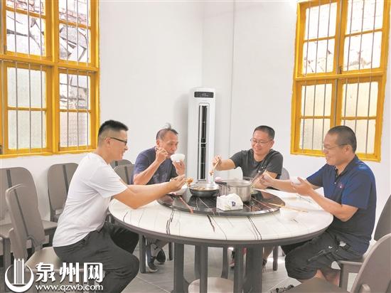 “学校10名老师都不是水口村人,有的回家一趟要20多分钟。”校长黄志群既是四年级语文老师,又是三、四年级体育老师。他说,之前包括他在内,有3名老师在食堂吃饭。今年新学期,学校开展课后延时服务,上午延迟到11点45分下课,留给老师们回家吃饭、休息的时间就少了。为此,水口村党支部书记林东亮发起提议,号召、组织乡贤为食堂出一份力。暑假期间,众乡贤出资出物,“众筹”翻新食堂。“老师们都很感动,现在有5位老师留下就餐。”