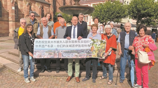 7月26日,德国莱法州当地报刊——《莱法州报》及时报道泉州申遗成功消息。莱法州和诺伊施塔特市政府官员、友好组织和友好人士纷纷以贺信、视频、信息等方式,对泉州成功申遗表示祝贺。诺伊施塔特市政府还在当地媒体、政府网站通过视频、图片、文章等介绍泉州。市长马克·魏格尔在贺信中表示,申遗成功是对泉州多年来致力于文化遗产保护工作最好的褒奖,相信这不仅会进一步提高泉州的国际知名度,也将为泉州市民深入参与跨文化交流提供更多的机会。