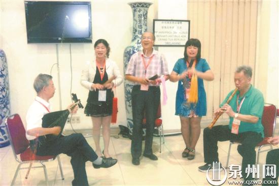 南音大会唱活动中,陈日升(中)与香港弦友合唱南音。