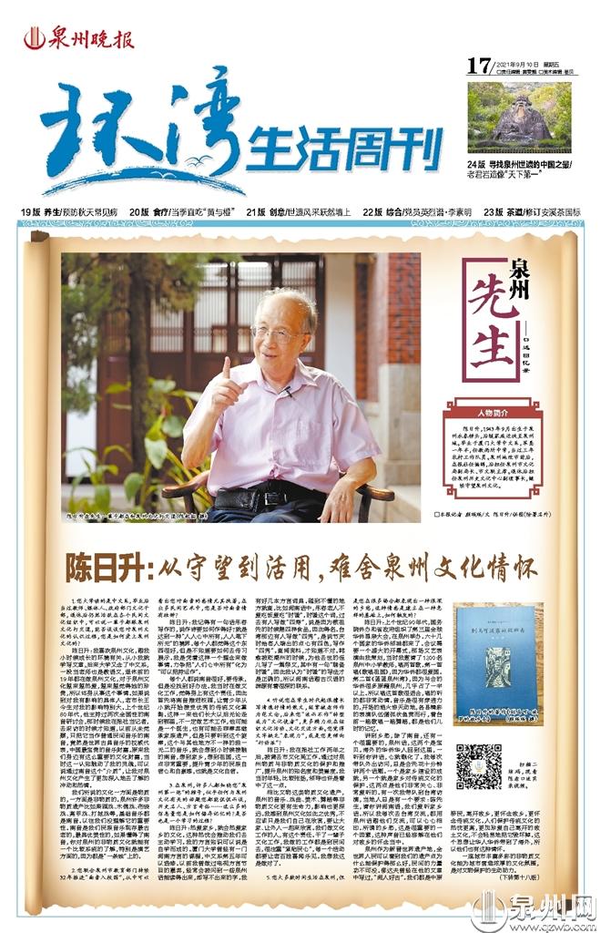 陈日升,1943年9月出生于泉州永春榜头,后随家庭迁徙至泉州城。毕业于厦门大学中文系,军垦一年半,任教两所中学,当过三年农村工作队员。泉州地改市前后,在报社任编辑,后担任泉州市文化局副局长、市文联主席。退休后担任泉州历史文化中心副理事长,继续守望泉州文化。