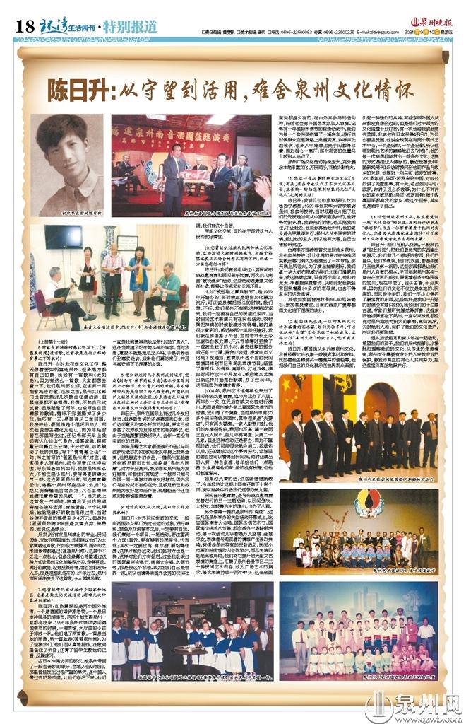 陈日升:我在报社工作两年之后,被调去市文化局工作。通过对泉州物质与非物质文化的保护和推广,提升泉州的知名度和美誉度。我当时年轻,比较张扬,领导也许是看中了这一点。
