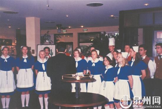 陈日升:印象最深的是两个国外城市。一个是德国的诺伊斯塔特,一个是日本冲绳县的浦添市。这两个城市跟泉州一直都有往来。1996年泉州代表团访问德国诺市的时候,一进宾馆,大厅里的小孩子排成一队,他们唱了两首歌,一首是当地的民歌,另一首就是《蓝蓝泉州湾》。为了迎接我们,他们很认真地排练,在歌词里备注了拼音,还请了留学生教他们正音,反复练习。