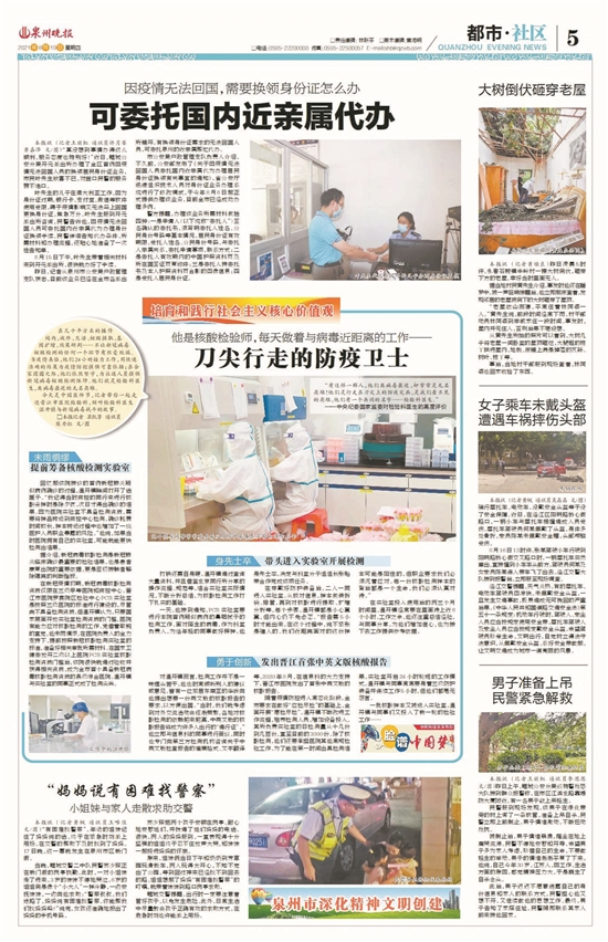 上月19日,泉州晚报5版报道了温开镇与新冠病毒战斗的故事。