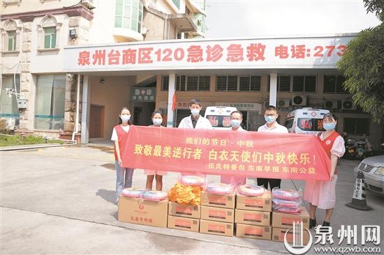 泉州网9月18日讯 (记者张金华 胡彦明 文/图)连日来,广大医护人员日夜奋战在抗疫一线,守护着泉州人民的生命健康和安全。他们挥汗如雨的努力付出牵动着社会各界的心。中秋临近,东南早报·东南公益联合多个爱心企业、爱心团队,送出月饼6000个,向抗疫一线的医护人员“逆行”壮举致敬,送上节日问候和祝福。
