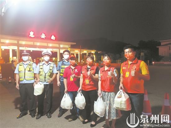 泉州网9月22日讯 (记者廖培煌 通讯员刘庆生 文/图)“在中秋节晚上能吃上这么一碗热腾腾香喷喷的夜宵,真是太暖心了!”昨晚10点多,在沈海高速公路惠安黄塘出入口,接过爱心商家和志愿者送来的夜宵,检查站的值勤人员满脸幸福。当晚,爱心商家和志愿者马不停蹄地跑了8个检查站,送上饱含爱意的中秋夜宵。
