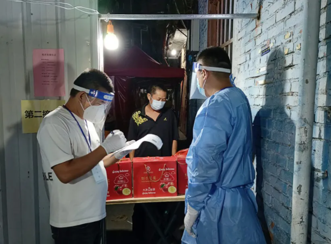 在源淮社区,社区工作人员与志愿者们前往正在居家医学观察的群众家。“中秋快乐,希望你们平安健康……”每到一户,志愿者都用电话连线群众,并将手中的月饼放置门口,用另类的方式祝他们度过一个甜蜜佳节。