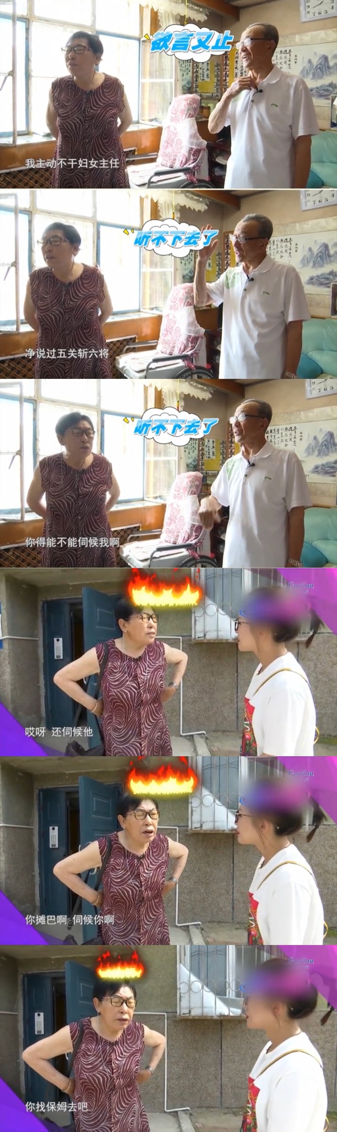 这一句话让大姨火冒三丈,下楼表示:“你瘫巴啊,伺候你,找保姆去吧!”