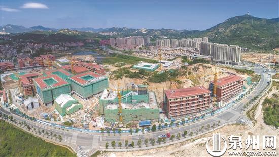 作为省重点项目,位于晋江紫帽镇的晋江新丝路文教园项目二期正在进行室内外装修,计划今年年底完工。 (林劲峰 许雅玲 摄)