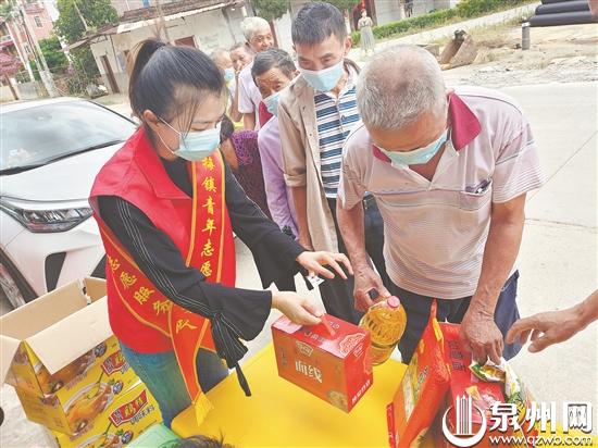 南安市洪梅志愿者协会志愿者为老人发放慰问品 (受访者供图)