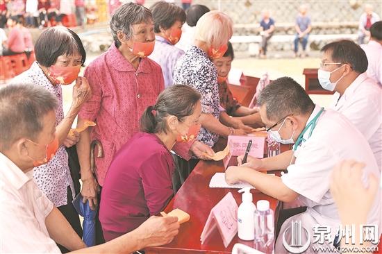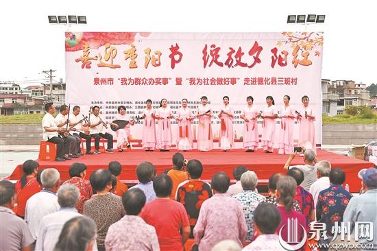 10月14日是重阳节,也是老年节。当天,由泉州市委文明办、德化县新时代文明实践志愿服务总队、泉州市东南公益协会联合主办,德化县委文明办、三班镇新时代文明实践所、德化县兰花草志愿服务中心承办的“我为群众办实事”暨“我为社会做好事”——“喜迎重阳节 绽放夕阳红”主题公益活动在德化县三班镇三班村举行。来自泉州市区、晋江和德化的爱心团队给500名老人带去了精彩的文艺演出和贴心的义诊义剪服务,还分别给70岁整、80岁整、90岁整的寿星代表发放了节日红包,给70岁以上的老人发放面线、鸡蛋等爱心大礼包,并慰问了10户家庭困难老人,给三班村的老人们送去最温情的关爱和最美好的祝福。