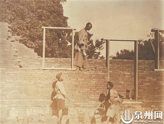 1906年泉州泥瓦匠在夯筑围墙